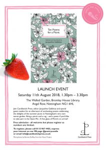 On Saturday 11 August, 1.30 – 3.30pm, Candlestick Press are launching Ten Poems for a Picnic in the most secret garden in the centre of Nottingham City. The Walled Garden of Bromley House Library. It’s one of my favourite places in Nottingham. It’s a stone’s throw away from Nottingham’s world famous city beach, so you can spend an hour or so building sandcastles and chilling on a deck chair, then bring your Pickernick Basket over to Bromley House to listen to some beautiful poems. My selection has poets from Scotland, England, Australia, Iran, America, Wales (including Gertrude Stein, Mimi Khalvati, Edwin Morgan, Frank O’Hara, Wayne Burrows, Edna St Vincent Millay, Katherine Gallagher, Jeremy Hooker and Peter Philips) and we’ll have some lovely local poets to read them. And (I love this bit) if you have a picnic poem you’d like to read, you CAN! In the Open Mic slots!